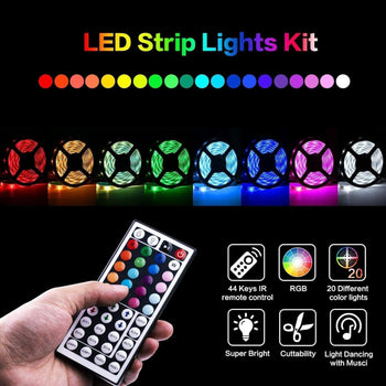 Sold out - RGB LED Strip Light - 1-20M LED Strip Lights 5050 RGB Colour Changing Tape Cabinet Kitchen TV Lighting Indoor/Outdoor Decor+sp.priceRaw ? 'price price--on-sale' : 'price'">