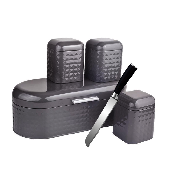Revamp your kitchen storage with our Bread Bin Set! This 4-piece kitchen storage set, featuring a beautiful bread bin and matching tea, coffee, and sugar canisters, is perfect for keeping your essentials fresh and organized. Order yours today and step up your kitchen game!