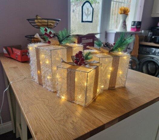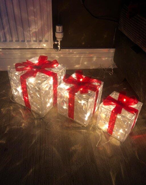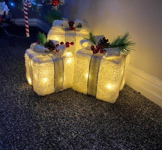 Add a touch of sparkle to any space with this elegant set of Christmas Light-Up Presents. Each gift box glows with soft LED lights that create a cozy, festive atmosphere, perfect for winter nights.