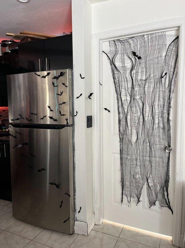You can hang these lightweight and simple-to-install cloths from ceilings, trees, or porches for an instant spooky effect.