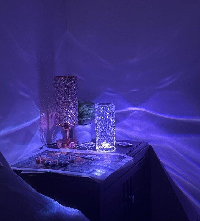 The Rose Crystal Lamp is a crystal lamp LED desk lamp with a diamond-cut surface that is made of premium acrylic.