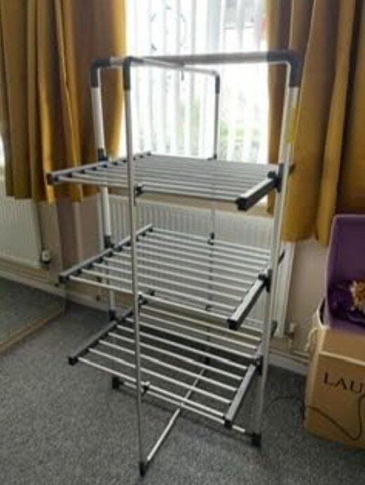 The 3-tier heated electrical clothes airer is an excellent choice for a convenient, user-friendly, and cost-effective way to dry your clothes. The multifunctional airer can store up to 15kg of laundry on 21m of drying space divided across three tiers.