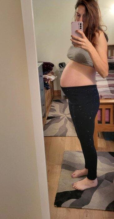 Designed with a soft fleece lining, these leggings keep you warm and cozy during the colder months. The plush interior feels gentle against your skin, providing the comfort you need as your body changes.