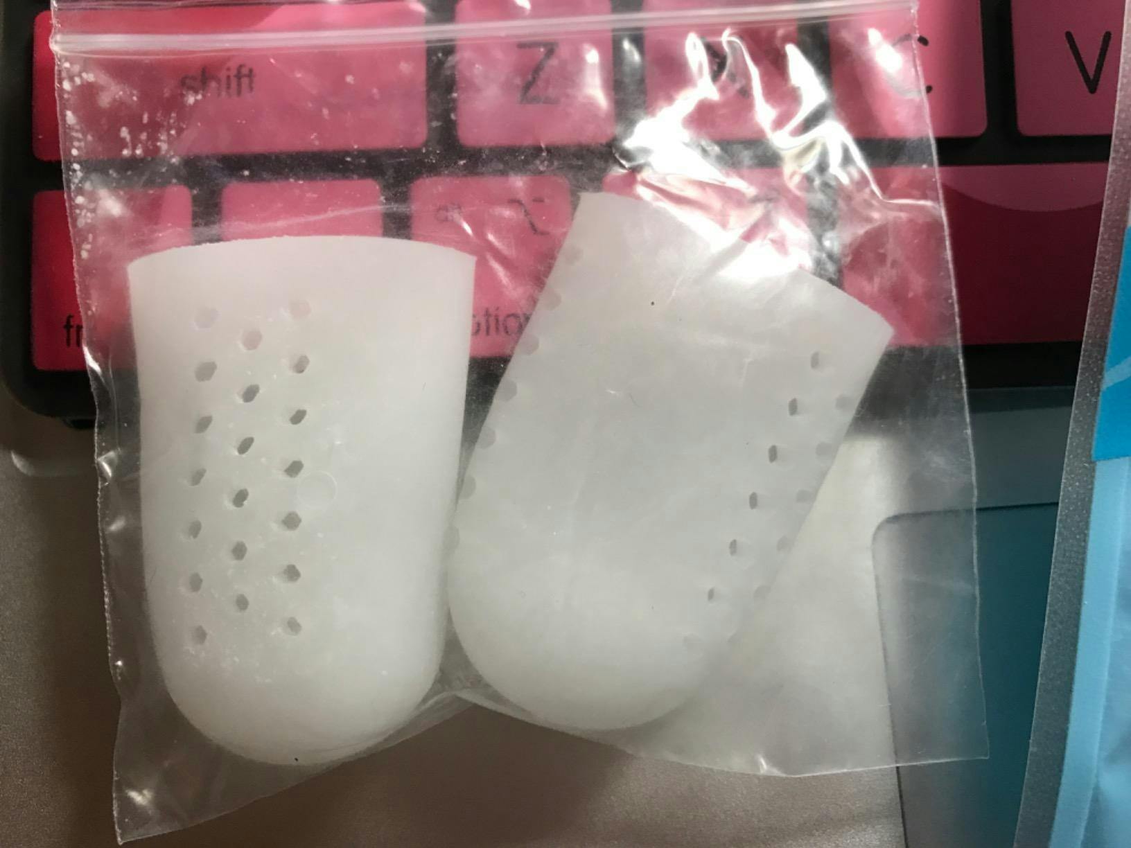 These toe guards are made of premium, soft silicone, which provides your toes with a soft, comfy padding. Furthermore, the elastic material hugs your feet's contours to create a snug fit that doesn't hurt.
