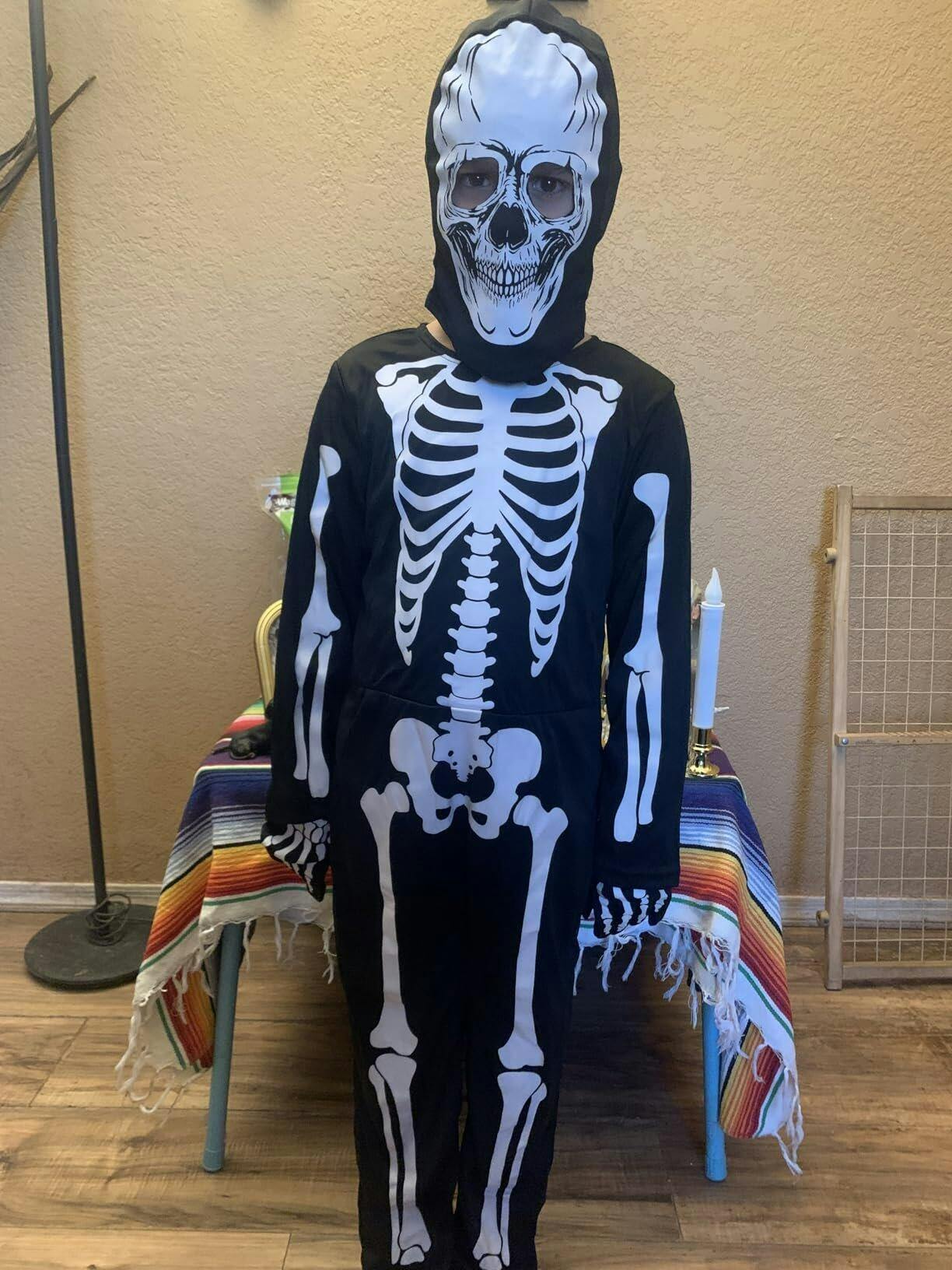 The convenient zip closure makes it easy for kids to put on and take off the costume without any hassle. They can quickly change into their skeleton persona and get ready for fun!