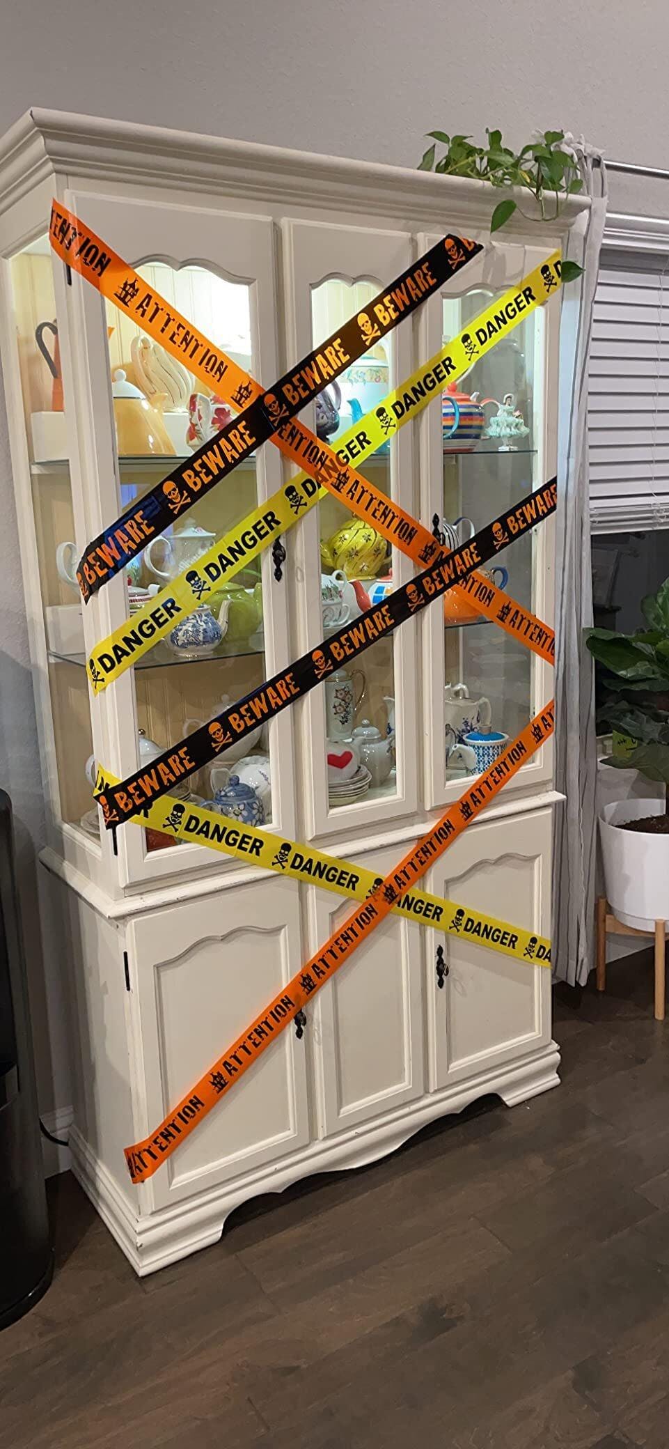 Featuring a classic caution tape design with eye-catching graphics and horror-themed text, this tape effectively communicates that your space is not for the faint of heart. It’s ideal for creating a creepy atmosphere!