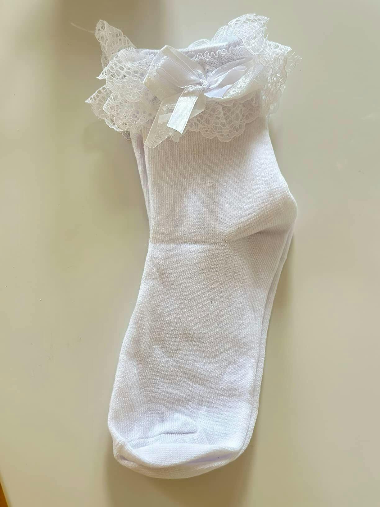 Lace Socks for Heels - Ladies Frilly Ankle Lace Socks Cute Crew Length Girls School Fashion