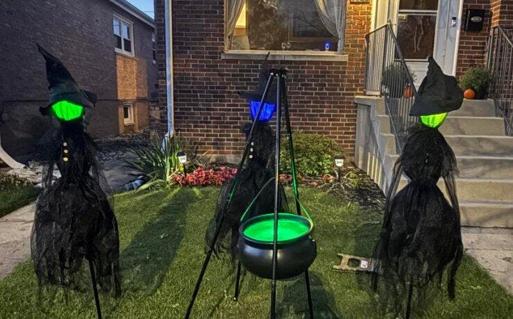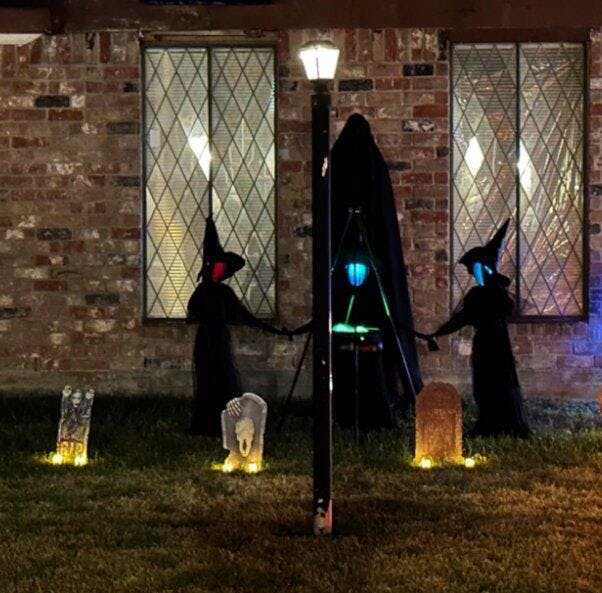 Additionally, carefully designed for maximum spookiness, these witches are made with durable, weather-resistant materials and glowing LED lights. They’re easy to set up, reusable year after year, and perfect for adding a witchy vibe to your haunted house setup.