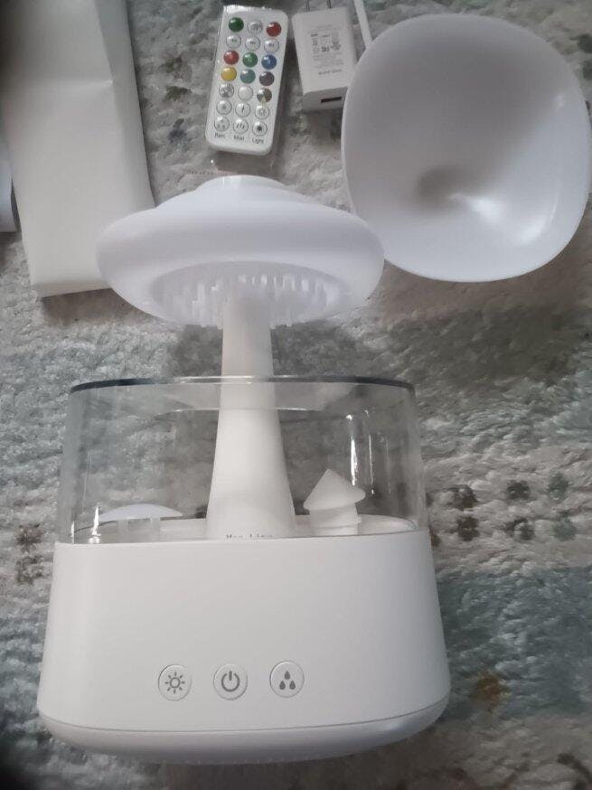 - Compact and Portable Design: With its sleek, space-saving profile, the Rain Cloud Humidifier can be easily placed on a desk, side table, or any other desired location, seamlessly integrating into your living or work space.