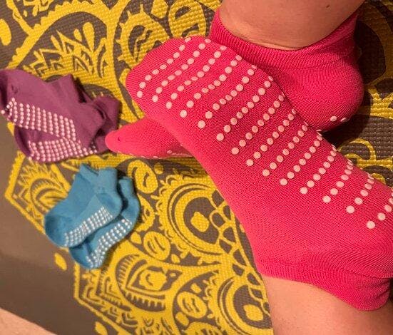 On slippery surfaces like hardwood floors and tile floors, the dot grippers on the bottom of the socks offer excellent traction. In addition to improving performance for exercises like trampoline, yoga, pilates, or barre, it offers stability and safety for everyday use at home or during a hospital stay.