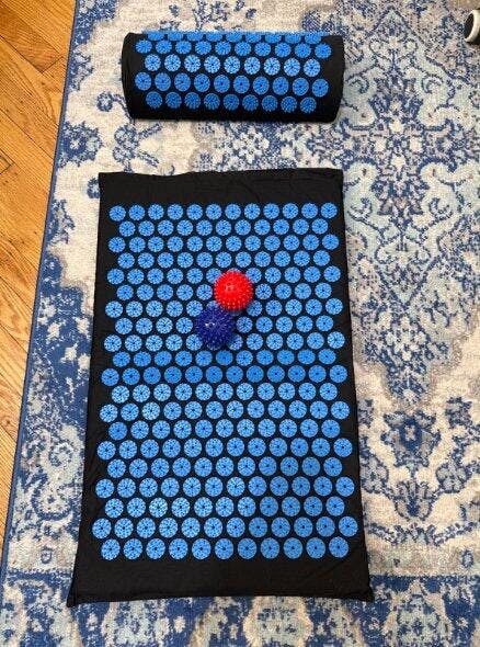 A spiky mat for back pain, a cushioned mat with several tiny metal or plastic spikes covering it, is included in the kit. These spikes work similarly to acupuncture in that they are intended to gently push on particular body points. Usually, the mat is big enough to fit the whole back.
