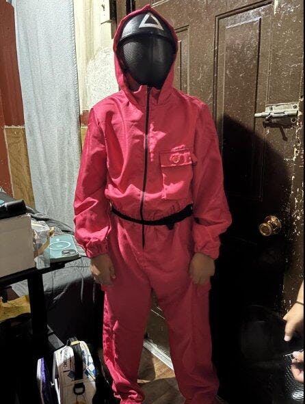 The costume replicates the show's most famous looks—whether it's the red guard uniform, green tracksuit, or the mysterious frontman. Get ready to take your costume game to the next level with this fan-favourite piece.