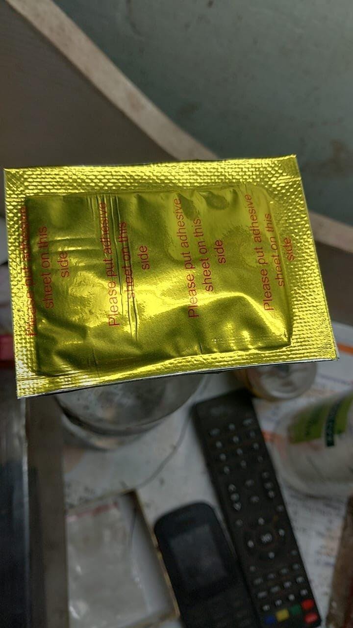 - Peel off the adhesive backing from the individual foot patch package after opening it.